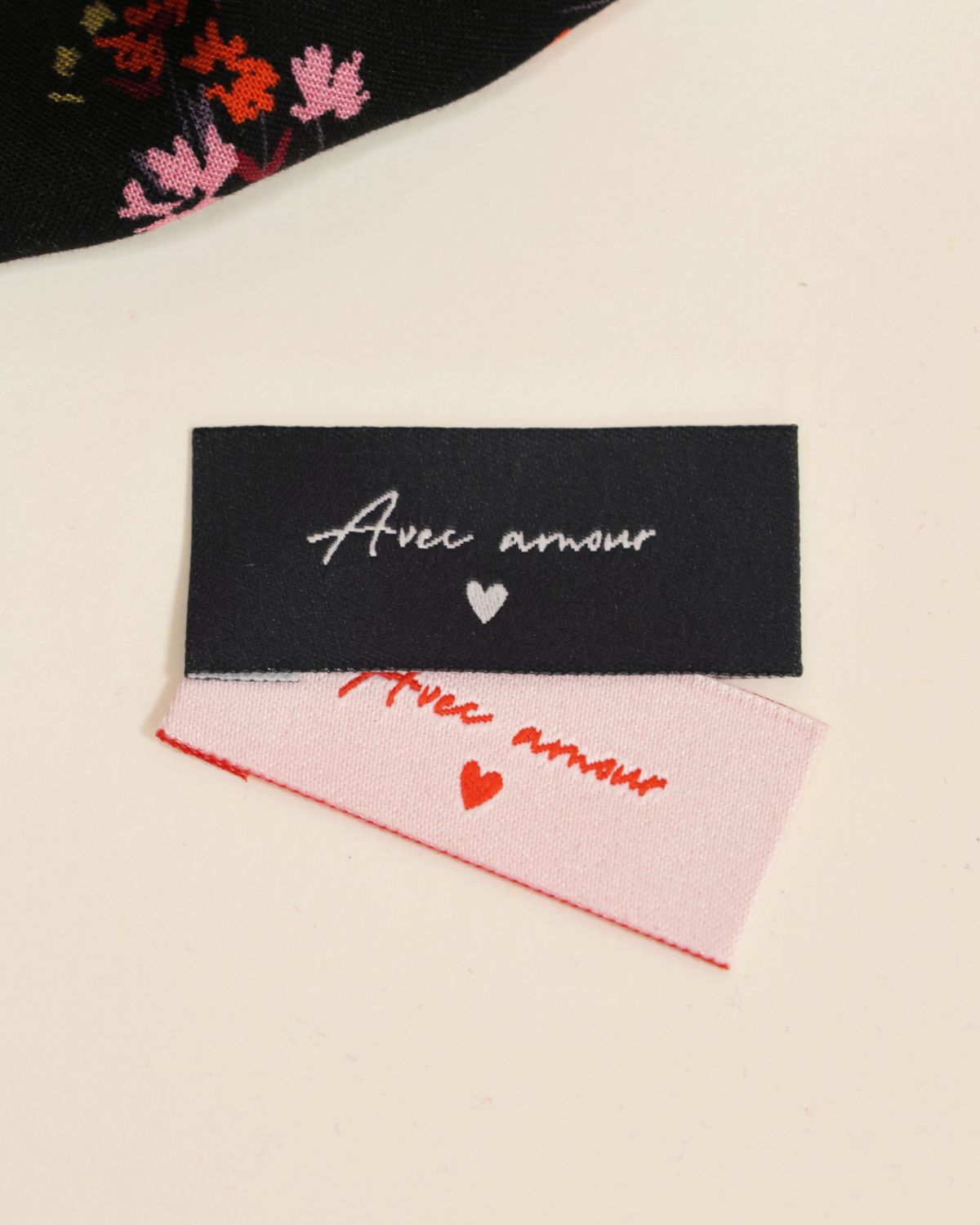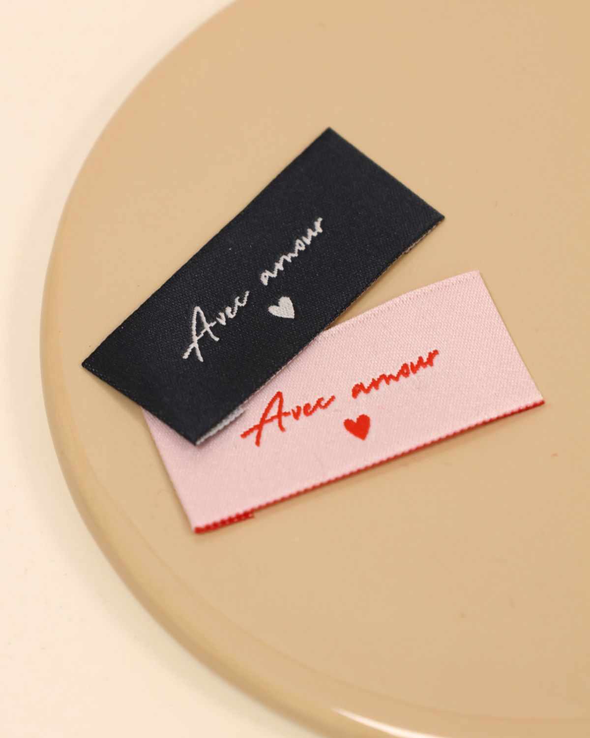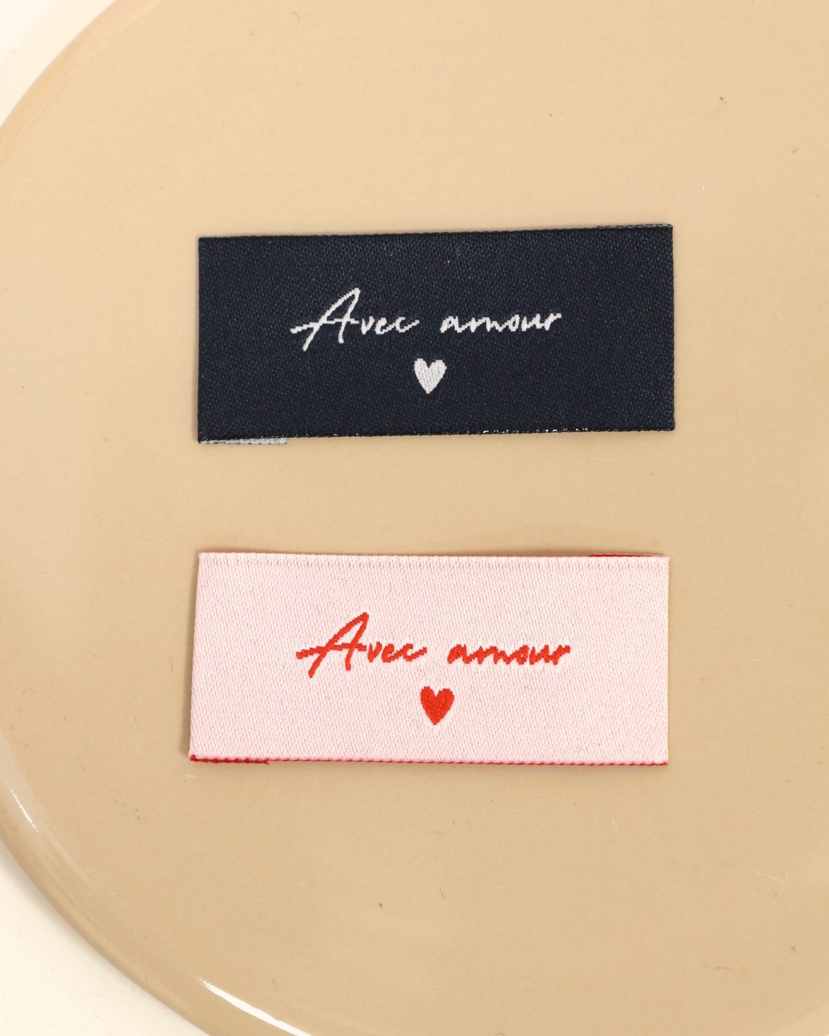Shop / A l'unité / Mercerie / Etiquettes à coudre / Cadeau : Duo d’étiquettes à coudre – Avec amour