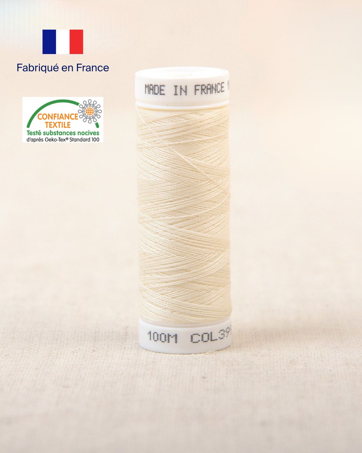 Ce fil est un fil pour tout coudre en bobine de 100 m. Il est adapté à tous les tissus et pour toutes les coutures, à la main comme à la machine. Ce fil de très haute qualité est fabriqué en France. Il est d’épaisseur uniforme ce qui garantit une couture de qualité et résistante.