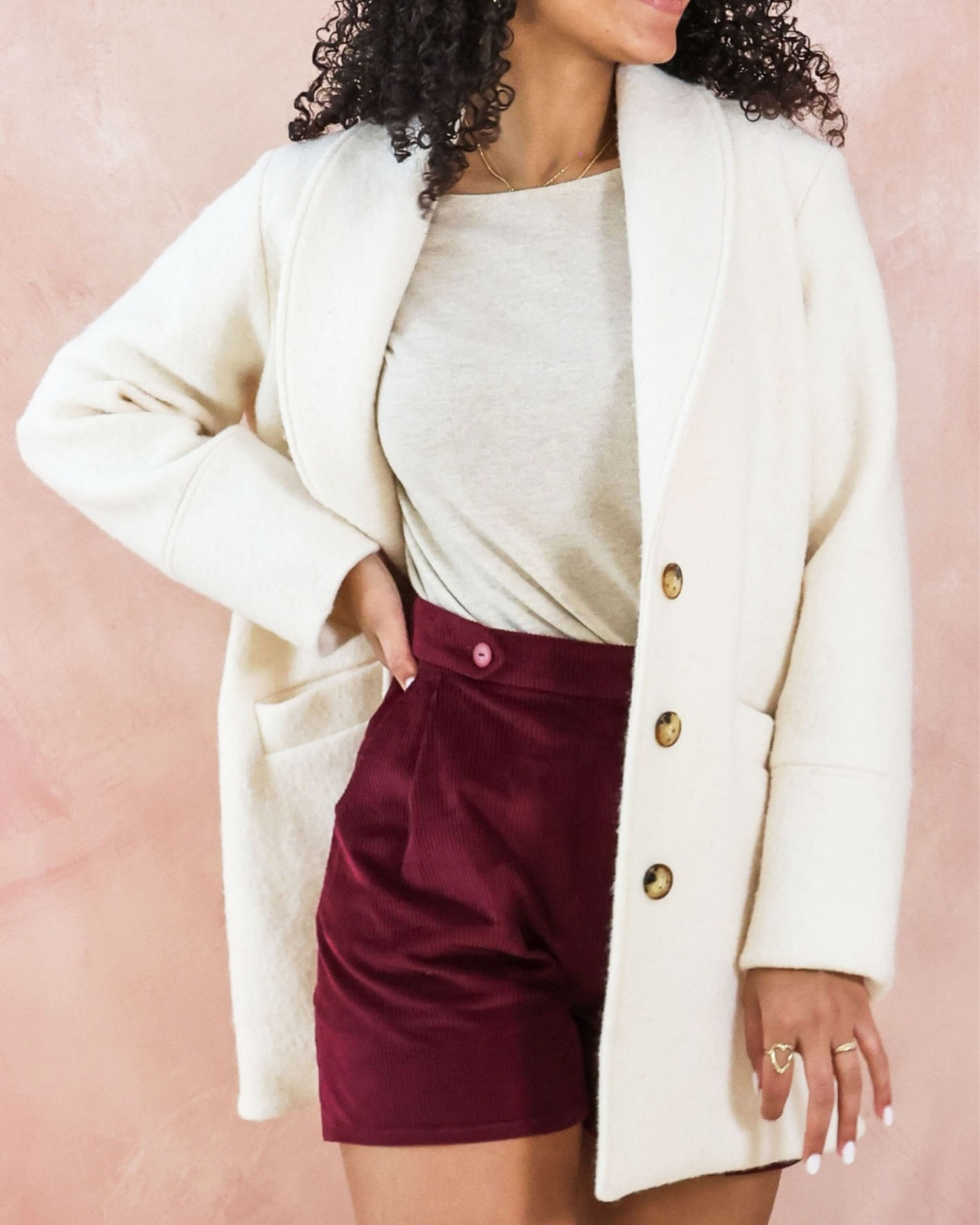 Pour ce modèle, nous vous conseillons des tissus épais qui tiennent chaud. Les tissus à base de laine comme la laine bouillie, les draps de laine, ou les tweed seront parfaits!