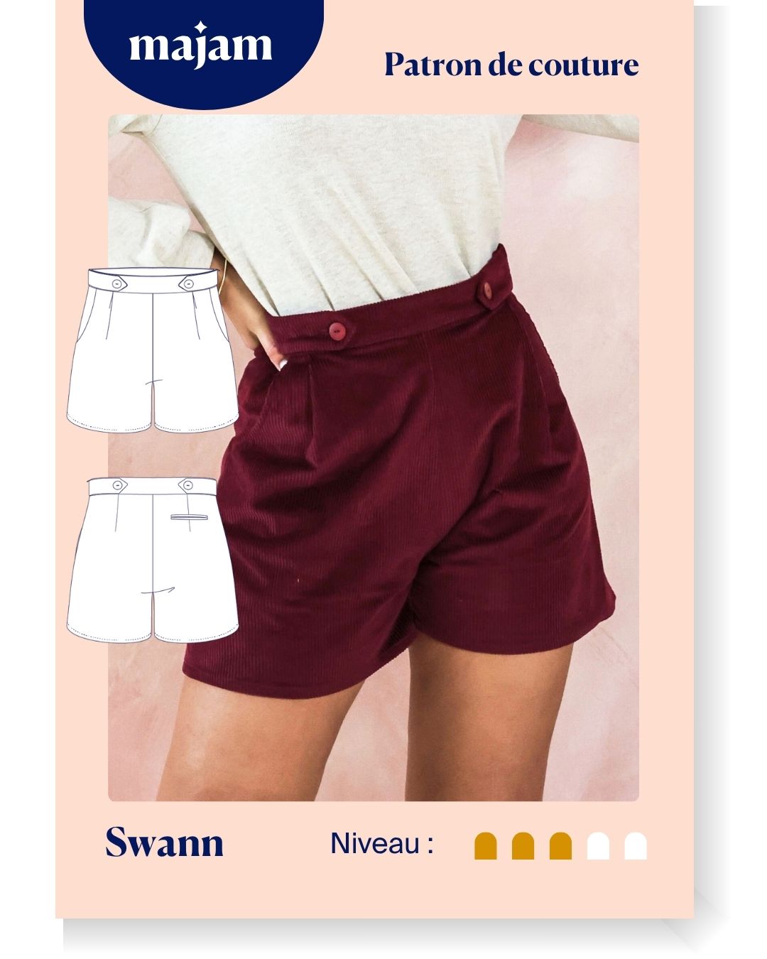 Swann est un patron de short confortable et élégant grâce à ses pattes capucins sur la ceinture. Le détail malin de ce patron: il se ferme par un zip de côté, caché dans la patte.