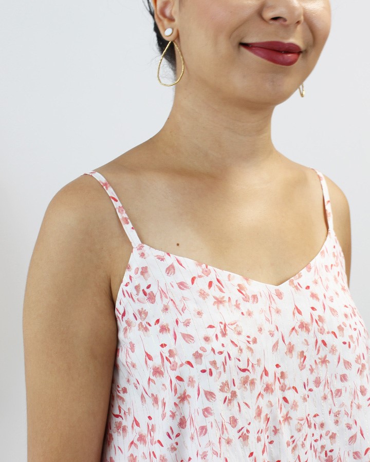Pour ce top, tous les tissus chaîne et trame seront parfaits ! Viscoses, tencels, crêpes, popelines de coton, lins, dentelles, voiles…